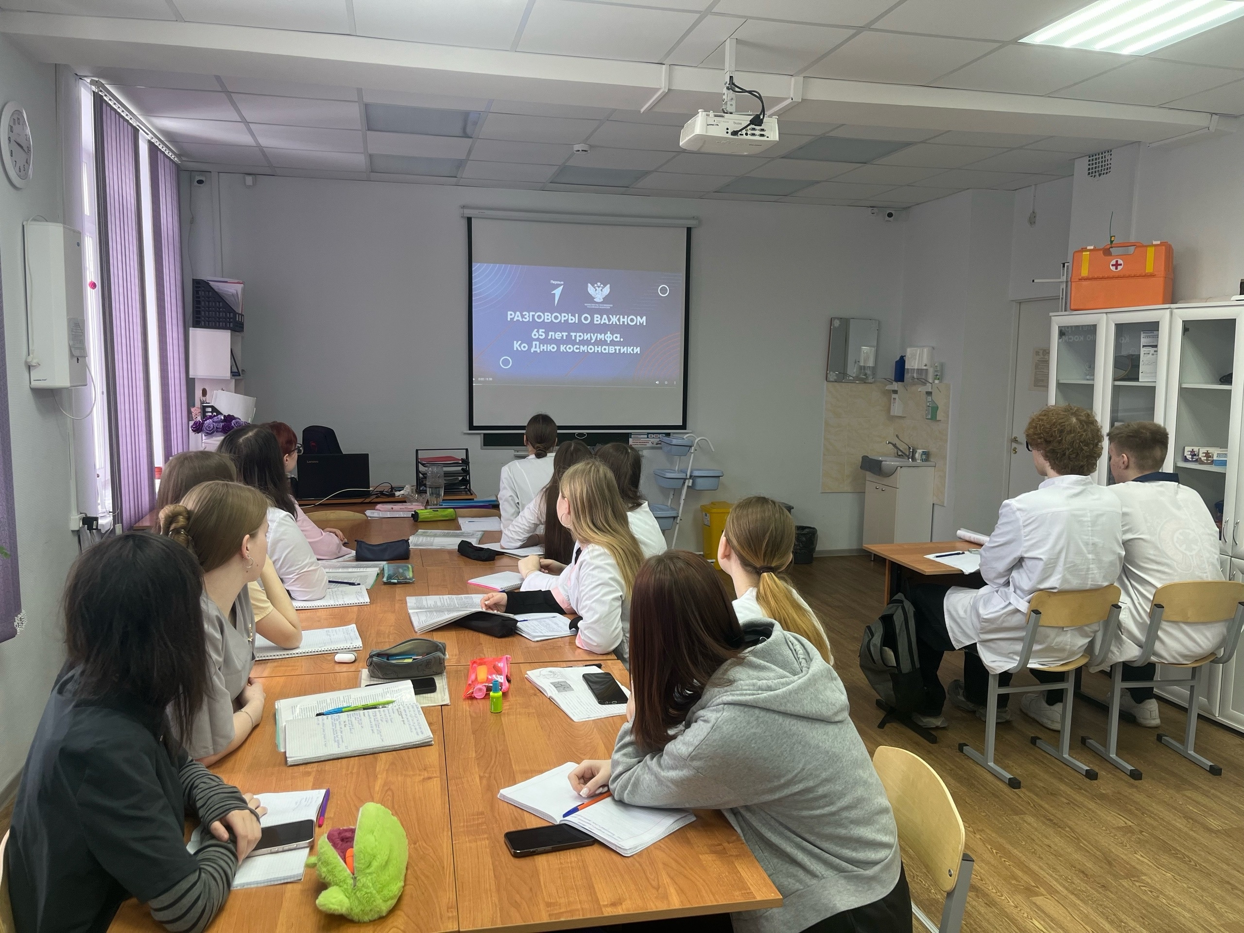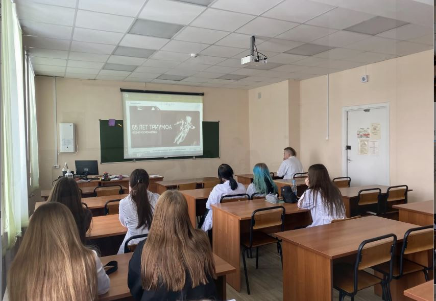 6 апреля в колледже прошло внеурочное занятие из цикла «Разговоры о важном» на тему: «65 лет триумфа. 80 лет космической отрасли»